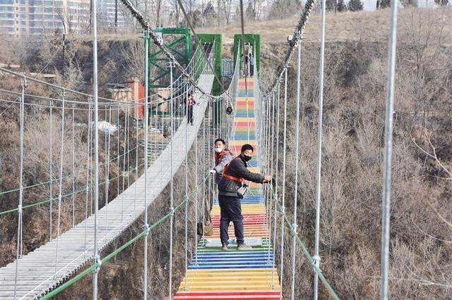 此次游樂體驗試運營項目為金城公園二期開發(fā)中的一部分,主要有“步步驚心”、高空秋千、高空威亞、玻璃橋、“天空之境”5個趣味體驗項目。