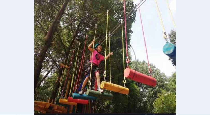 材料:防腐木、熱鍍鋅鋼絲繩、攀巖繩、不銹鋼鏈接件